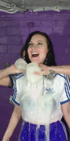 Wetandmessyfun KT got rubbed down on an inflatable covered with molasses by Stacey