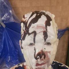 Larzstord was surprised by Messyblondie05 with a big sloppy cream pie to the face